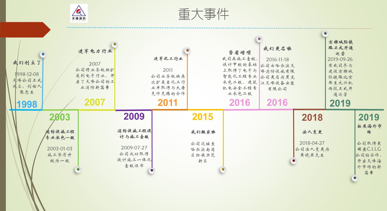 黑龍江天峰設備安裝有限公司(以下簡稱:天峰消防)創(chuàng)立于1998年,主要承接能源化工、石化、電力、軌道交通、冶金、城市管廊等工業(yè)行業(yè)消防系統工程,可為客戶提供特殊消防系統的詳細設計、供貨、施工等集成服務,天峰消防將依靠自身實力和信譽實現“立足龍江,布局全國,走向海外”的目標。